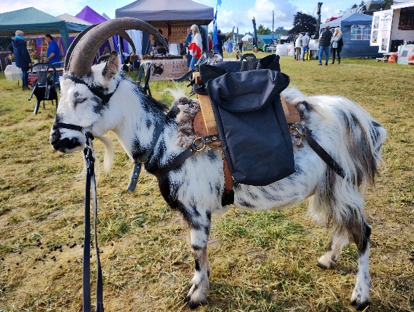 Minstrel loves to help take feed for the sheep up the hill in snowy weather and has been to as local show with his saddle pack on. Goats love to be doing things as they are very intelligent animals.